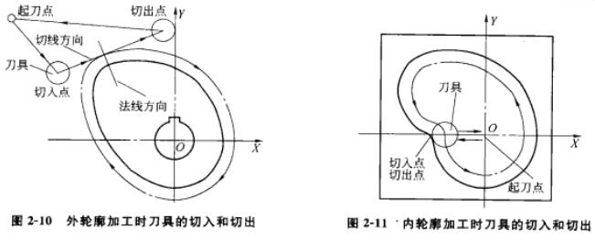 在數(shù)控銑床及加工中心中銑削平面工件外輪廓時(shí)一般采用立銑刀側(cè)刃切削。應(yīng)避免沿工件外輪廓的法向切入,而應(yīng)沿外輪廓曲線的切線方向(或曲線延長(zhǎng)線的切向)切入,在切離工件時(shí),也應(yīng)沿外輪廓曲線的切線方向(或曲線延長(zhǎng)線的切向)切離工件,以避免切入成切離時(shí)在工件上產(chǎn)生痕跡(見(jiàn)圖2-10)。在銑削封閉的內(nèi)輪廓側(cè)面時(shí)(見(jiàn)圖2-11),因內(nèi)輪廓曲線不允許外延(或切線方向與輪廓曲線相交),刀具只能沿輪廓曲線的法向切入和切出,此時(shí)刀具的切入和切出點(diǎn)應(yīng)盡*選在內(nèi)輪廓曲線兩幾何元素的相交處。如果曲線都是平滑過(guò)渡的,那么切離時(shí)應(yīng)在切入點(diǎn)處繼續(xù)沿曲線切削一段后(把切入點(diǎn)處的刀痕及由于刀具半徑補(bǔ)償引起的加工殘余切除)沿法向切出。在輪廓的銑削過(guò)程中要避免進(jìn)給停頓,否則會(huì)因銑削力突然變化而在停頓處的輪廊表面上留下刀痕。
